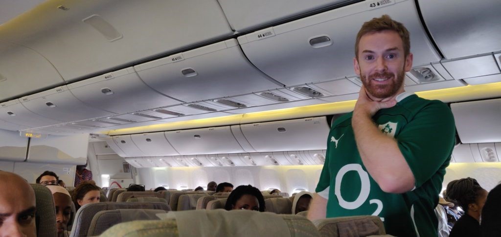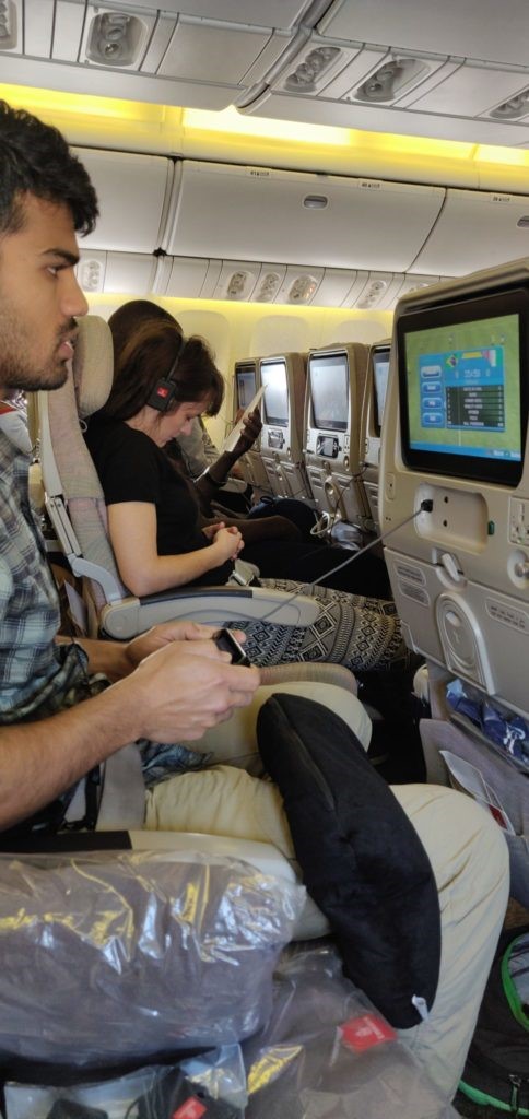 We met David S at the Dubai airport and departed Dubai around 9:30 am. We weren’t organized enough to arrange seating next to each other so I passed time playing this soccer video game on the entertainment unit. Food has always been the highlight of any flight and it didn’t disappoint! We had the option of Chicken or Cod, everyone agreed both good choices ! I’m not actually sure how to describe the dessert, but it was like a giant bowl of whipped cream with some fruit jelly in the middle of it. I finished all of it!!! Those of you competing against me in the weight loss challenge can now rejoice 🙂