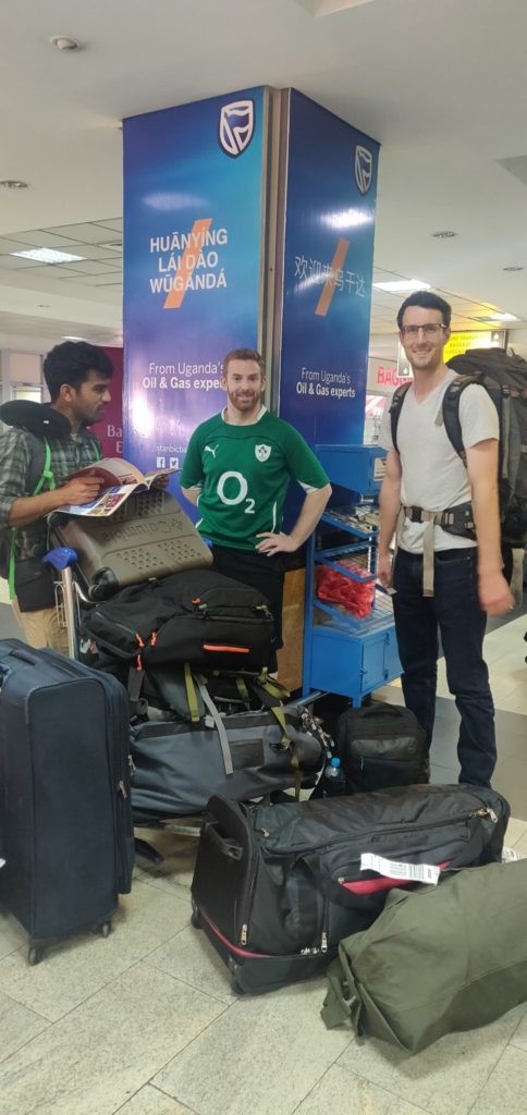 We were greeted Ugandan security who had as all hand sanitize before we went to customs. Hand Sanitizer, masks, and latex gloves……..thank the Corona Virus.