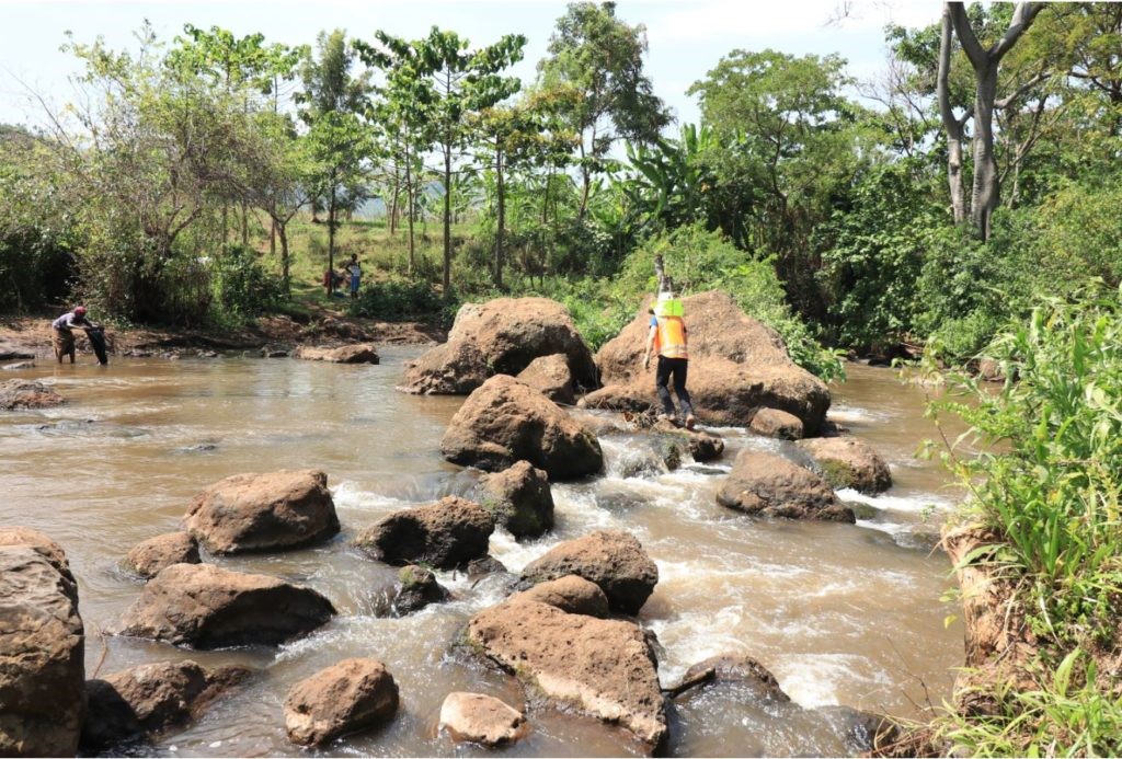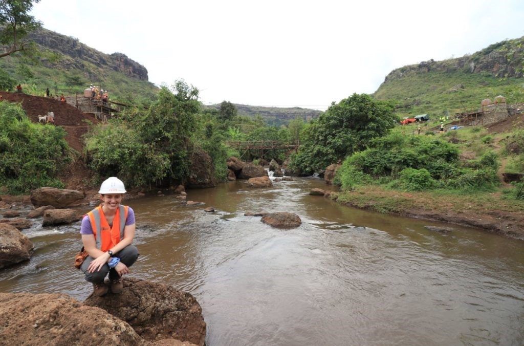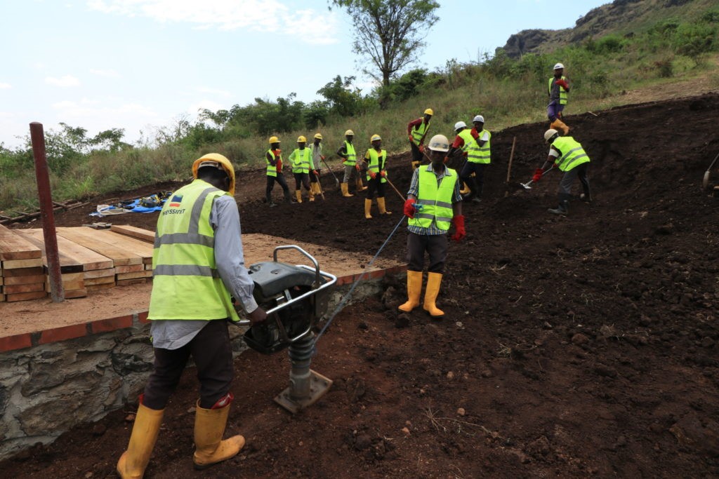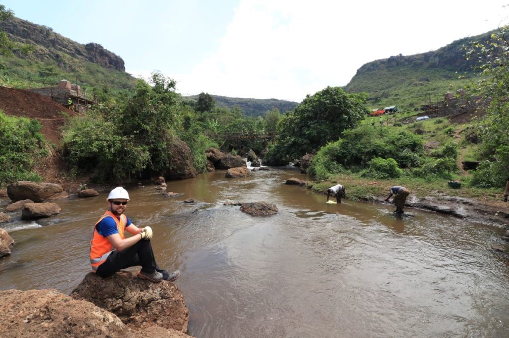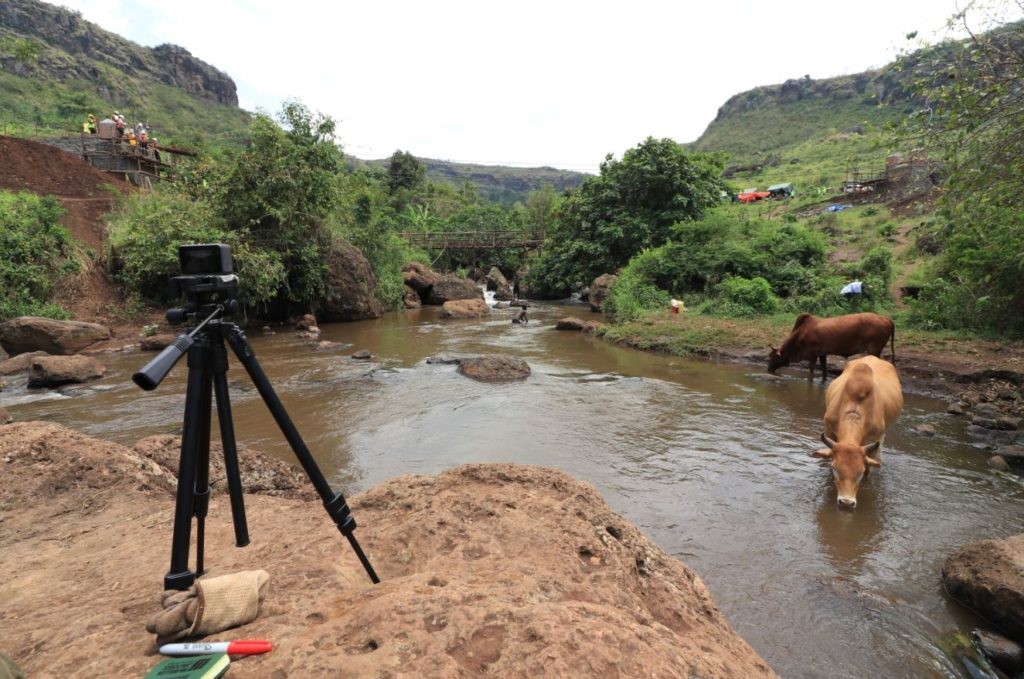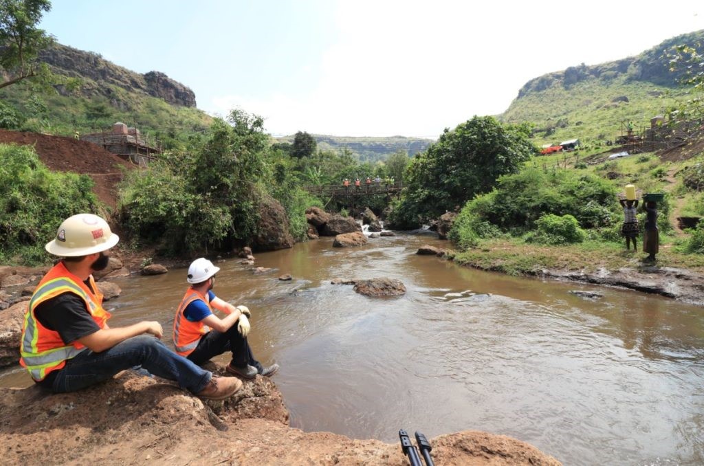 Around mid-morning we anticipated we were going to be short of rock back fill for the left abutment. To counter this so a crew of 20 local workers trooped up the hill to harvest the basalt boulders for the abutment. Many of the workers, women in particular, chose to carry the rock on there heads as it was said to be ‘more comfortable’ this way. They put a wrapped banana leaf on their heads followed by the boulder, and appeared to glide over the rough ground with two free hands.
