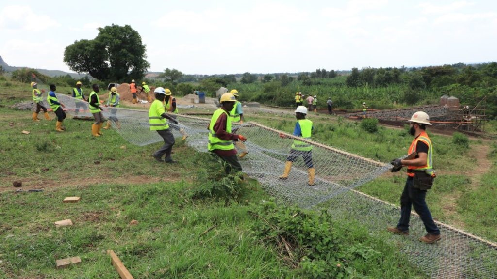 The Sanzara bridge is 60 meters long, requiring 120 meters of fence. Jen and Issa and a team of local workers prepped 6 rolls of 18 meter chain-link. This encompassed 3 rolls for each side and then a spliced 6 meter section to cover the distance.