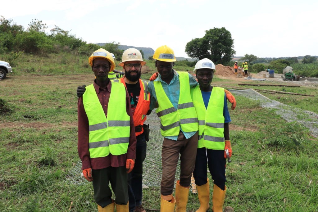 Jen and Issa took on the fencing prep task. Work included carrying the 18 meter rolls of chain-link from the storage and then rolling them out on the “flatter” part of site. The chain-link was then rolled out and stretched before nailing the wood curb to it. Challenges included utilizing u-nails not intended for this application, so we had a small crew adjust the opening size on all the u-nails. The quality of the fence manufacturing was “adequate”, it took additional effort with a pair of pliers to tie in loose ends and inconsistencies in the links.