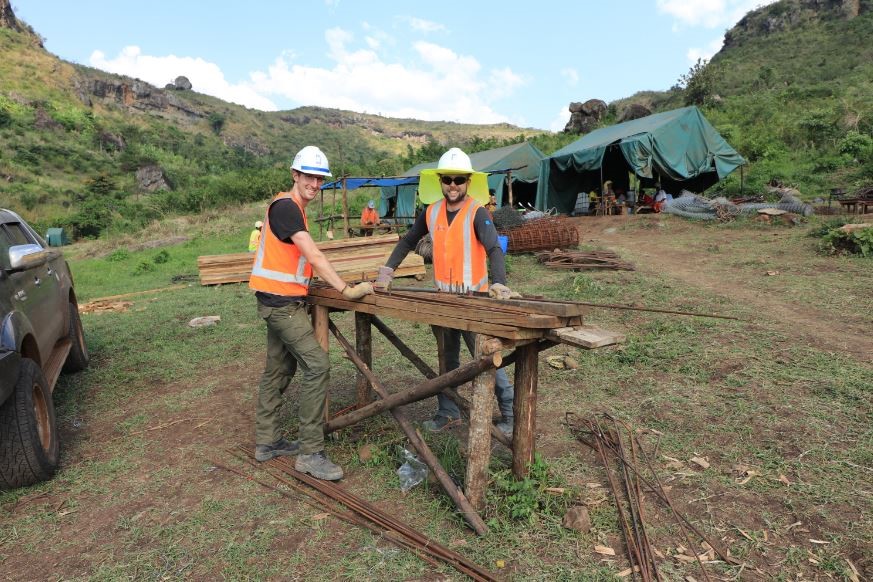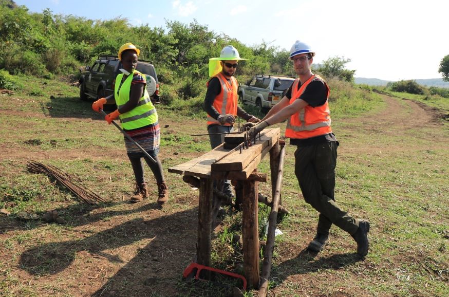 David, Fred and Winnie moved onto prepping the reinforcing steel hangers for the bridge set up tomorrow, prepping 124 bars in the heat.
