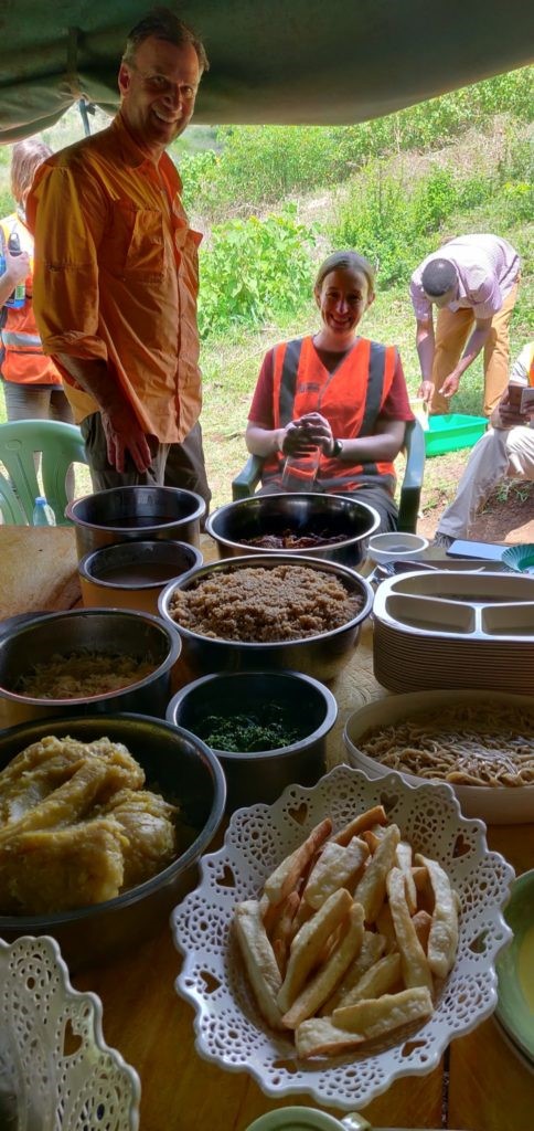 Morning tea (commonly referred to as ‘Break Tea’) is especially enticing each day as the work site is just starting to heat up when we break at 11 am. On the Menu; bananas- in all different forms. We also routinely enjoy Rolex, a Ugandan staple, followed by a siesta of sorts at the lunch tent.